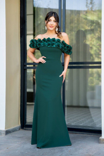 پیراهن مجلسی ماکسی مدل ویلیام - یقه گل برجسته